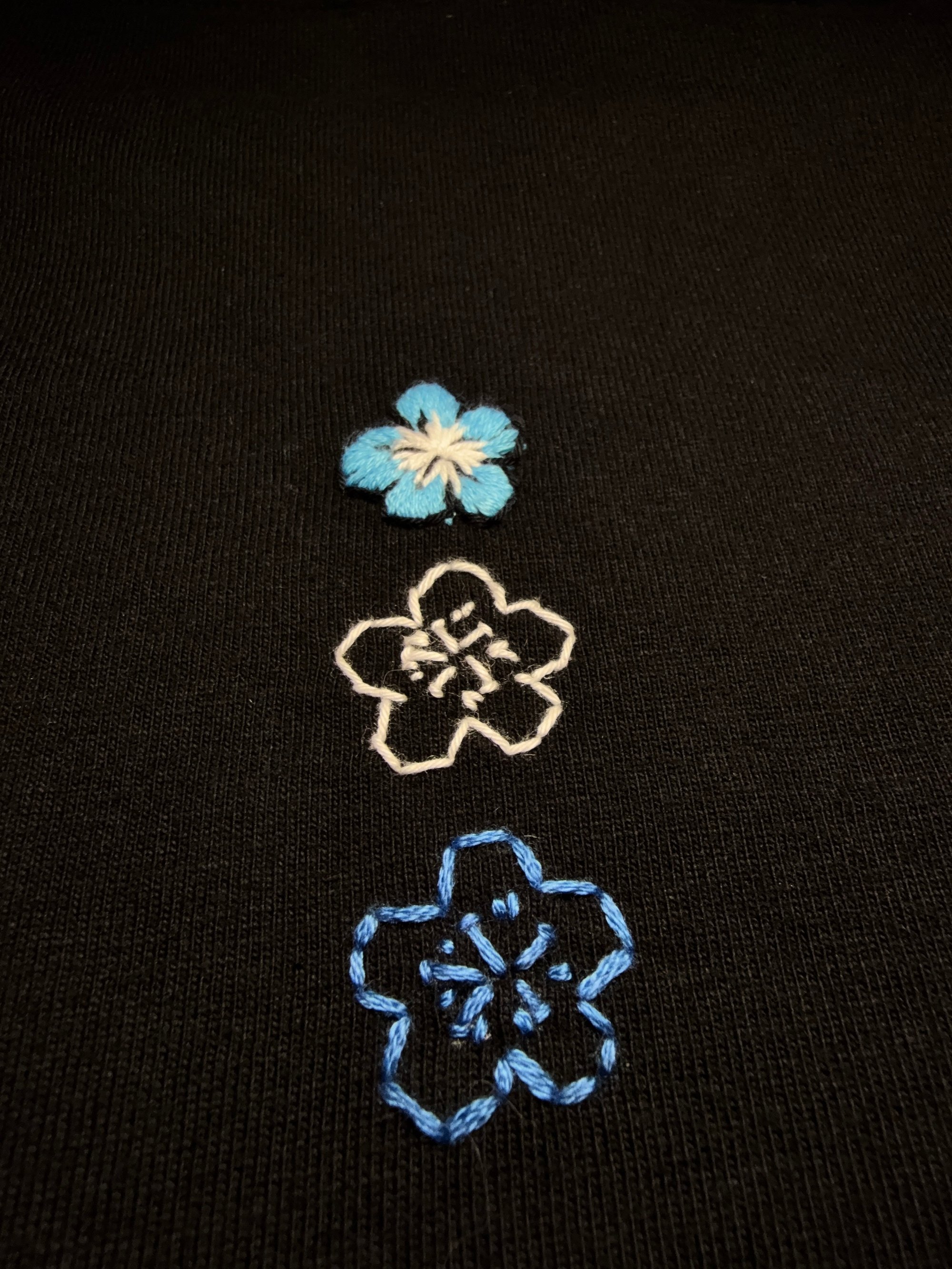 the final shirt I made inspired by my sub's favorite flower: the baby blue eye...and the only one of its kind ;).
